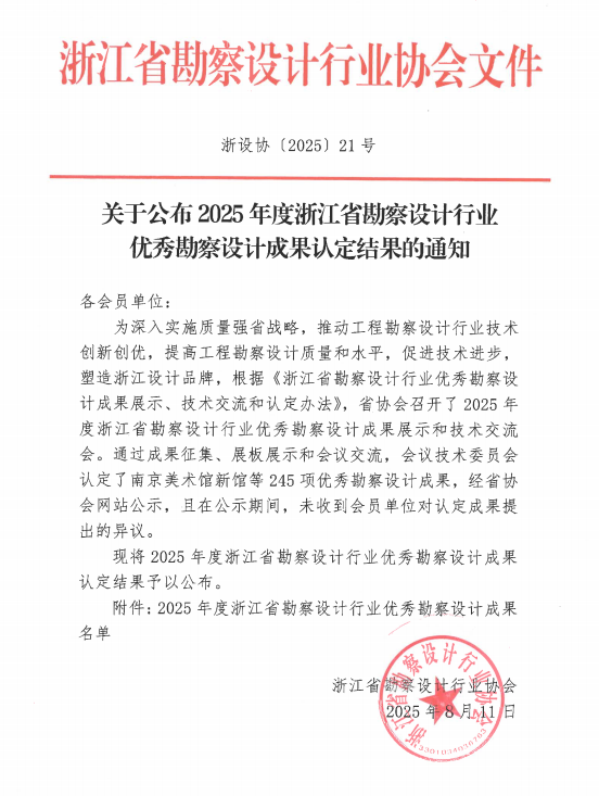 近日,2025年度浙江省勘察設(shè)計行業(yè)優(yōu)秀勘察設(shè)計成果評選結(jié)果正式公布。由我院牽頭設(shè)計的“奉化江堤防整治工程鄞奉交界段”項目,繼榮獲寧波市優(yōu)秀勘察設(shè)計獎之... -
