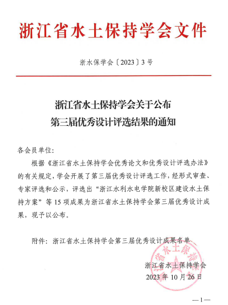 喜報(bào) | 我院項(xiàng)目榮獲浙江省水土保持優(yōu)秀設(shè)計(jì)發(fā)布日期:2023.12.21