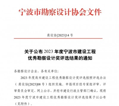 喜報(bào) | 我院兩大項(xiàng)目榮獲2023年度寧波市優(yōu)秀勘察設(shè)計(jì)獎(jiǎng)!發(fā)布日期:2023.06.21