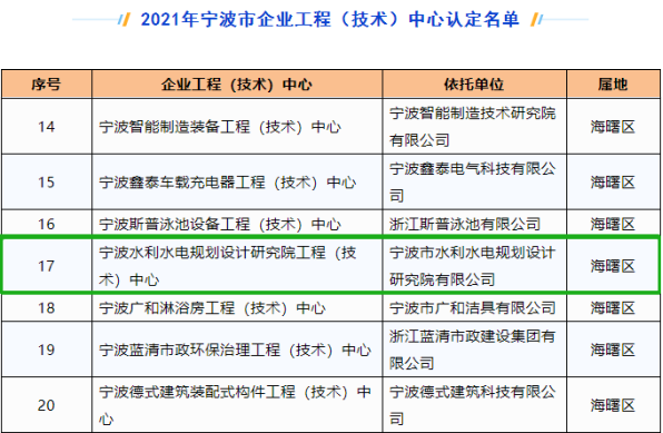 我院成功獲得2021年寧波市企業(yè)工程(技術(shù))中心認定發(fā)布日期:2022.09.15
