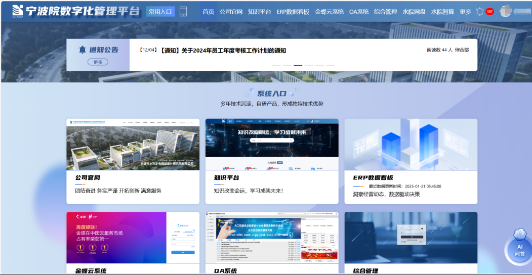 在“數(shù)字寧波院”建設(shè)的管理端,舉全院之力深入推進(jìn)院數(shù)字化綜合管理平臺建設(shè),實(shí)現(xiàn)知識管理系統(tǒng)、企業(yè)資源計(jì)劃系統(tǒng)(ERP看板)、水院智算、智能AI問答等模塊應(yīng)用上線;建設(shè)OA辦公平臺的工資管理系統(tǒng),實(shí)現(xiàn)了員工工資的在線審批、自動生成和匯總統(tǒng)計(jì);建設(shè)完成固定資產(chǎn)實(shí)物管理系統(tǒng),實(shí)現(xiàn)了資產(chǎn)信息的動態(tài)查詢,提高了固定資產(chǎn)管理的規(guī)范性。