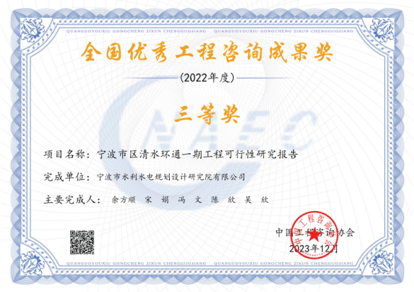 在工程項(xiàng)目方面,獲得2022年度全國優(yōu)秀工程咨詢成果獎、2024年度寧波市優(yōu)秀勘察設(shè)計(jì)獎、2024年浙江省勘察設(shè)計(jì)行業(yè)優(yōu)秀勘察設(shè)計(jì)”綜合類成果獎、寧波市優(yōu)秀水利工程設(shè)計(jì)二等獎、“浙江省文明標(biāo)化工地”稱號、“2024年度寧波軌道交通市域鐵路工程立功競賽先進(jìn)集體”等各類獎項(xiàng)十余項(xiàng)。