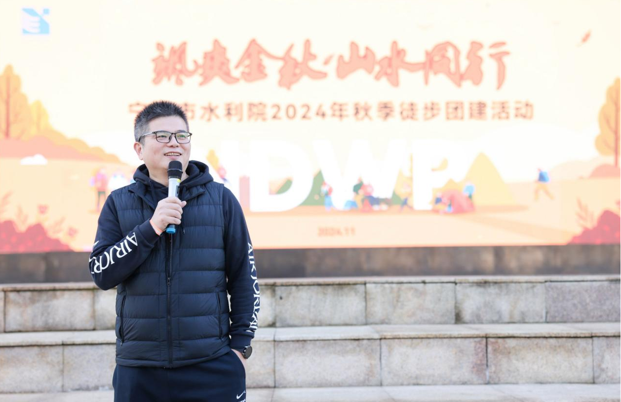 隨后,活動正式開幕。首先,由副院長湯建輝代表院領(lǐng)導(dǎo)宣布“颯爽金秋 山水同行”寧波市水利院2024年秋季徒步團(tuán)建活動正式開始,并預(yù)祝本次活動圓滿成功,鼓勵(lì)員工們在活動中鍛煉身心,放松精神,挑戰(zhàn)自我,共同踐行積極樂觀、團(tuán)結(jié)進(jìn)步的集體精神。