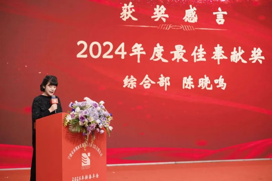 2024年度先進工作者獲獎代表工程院機電所的邵煜、2024年度最佳奉獻獎獲獎者綜合部的陳曉鳴、2024年度最佳新人獎獲獎代表智慧水利研究院咨詢與解決方案部的董春暉,先后上臺發(fā)表獲獎感言。