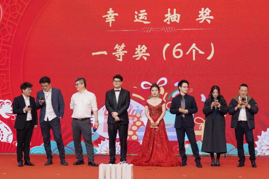 為活躍現(xiàn)場氣氛,增加年會趣味,文藝節(jié)目之間穿插了8組幸運抽獎活動,抽取幸運獎、三、二、一等獎品共計168份?,F(xiàn)場歡呼聲此起起伏,喜氣洋洋,其樂融融。最后,一等獎揭曉,獲得華為手機大獎的6位同事紛紛獻上才藝節(jié)目,或歌或舞,將氣氛推向最高潮。