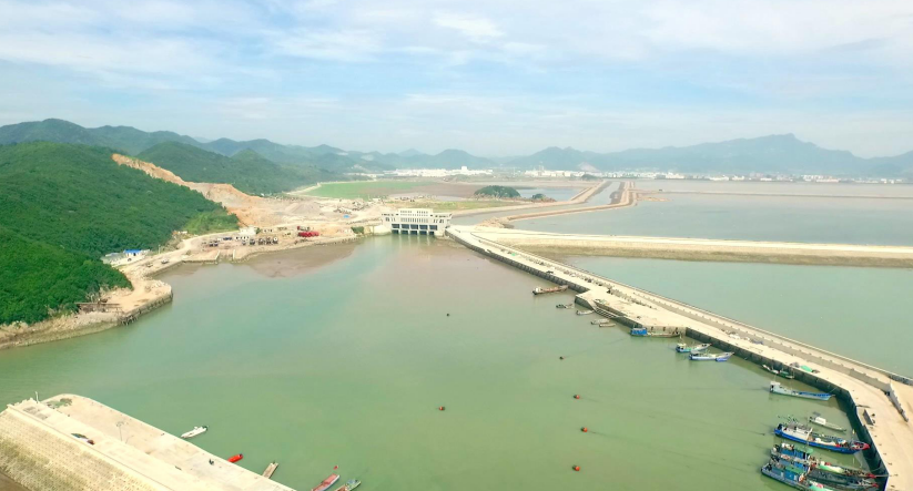 工程圍涂面積2.12萬畝,海堤全長約5345m。工程項(xiàng)目由海堤、水閘、排澇河、防波堤、船閘、交通堤、交通橋等組成。海堤工程包括南堤4508.3m、北堤840m;水閘工程炮臺(tái)山主排閘5孔×8m、飯桶山主納閘凈寬4孔×8m、貓頭納排閘3孔×3m、竹灣沖沙閘1孔×3m;河道工程包括炮臺(tái)山河道3081m、貓頭納排河2390m、白巖山主排河1300m、飯桶山主排河(3064m)以及南區(qū)納潮干河(4073m);防波堤長為703.87m;船閘凈寬10m;交通工程包括Ⅰ號(hào)交通堤、Ⅱ號(hào)交通堤及北分支、南分支交通堤,施工道路、竹灣碼頭、竹灣錨地、毛灣碼頭及防波堤、1#交通橋、2#交通橋。
