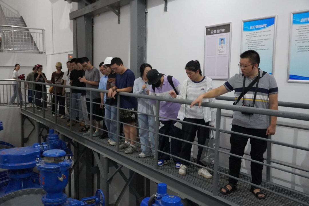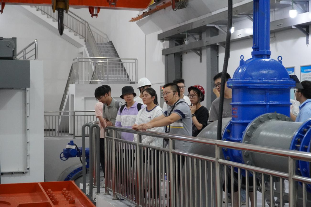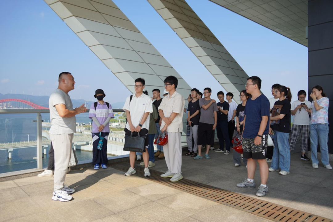 最后,研學(xué)隊(duì)伍來到北堤樞紐參觀。該工程榮獲中國建筑行業(yè)工程質(zhì)量的最高榮譽(yù)獎——2020-2021年度第一批中國建設(shè)工程魯班獎。胡經(jīng)理帶領(lǐng)研學(xué)隊(duì)伍依次進(jìn)入啟閉機(jī)房、觀景臺、控制室等處,現(xiàn)場講解工程設(shè)計(jì)思路、建造工藝和管理要點(diǎn)。