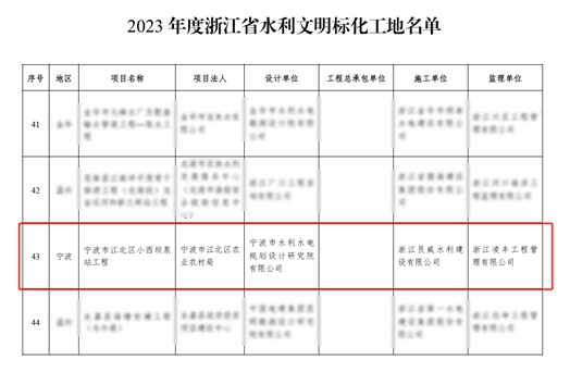 近日,經(jīng)浙江省水利廳2023年度浙江省水利文明標(biāo)化工地名單公布,我院承擔(dān)全過(guò)程工程咨詢的寧波市江北區(qū)小西壩泵站工程喜獲“浙江省文明標(biāo)化工地”稱號(hào),成為寧波市水利行業(yè)的標(biāo)桿工程。
