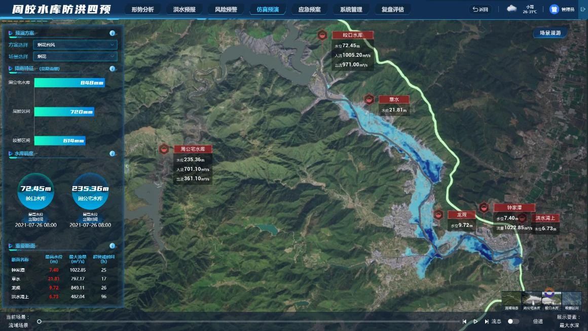 借助高度仿真的可視化技術(shù),精準(zhǔn)預(yù)演分析水庫(kù)漲落、河道漲落、淹沒(méi)區(qū)域及其影響情況首次成為了可能。這不僅有助于研判洪水形勢(shì),更能在復(fù)雜多變的洪水條件下為水庫(kù)防汛決策提供有力支撐。